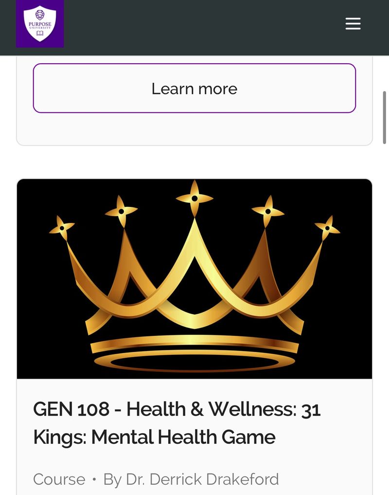- GEN 108 “31 Kings Mental Health Game“ with over 200 wellness videos